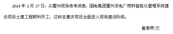國電集團霍州發電廠燃料智能化管理系統建設項目順利開工