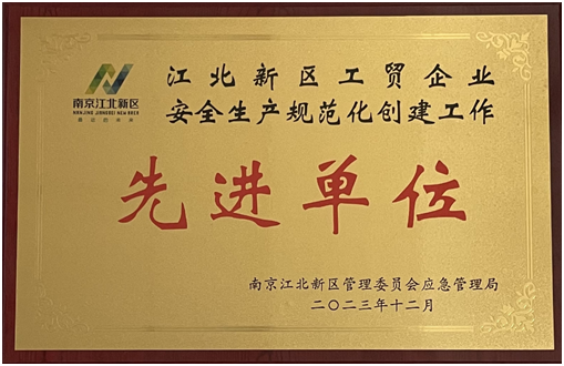 公司榮獲江北新區(qū)工貿(mào)企業(yè)安全生產(chǎn)規(guī)范化 創(chuàng)建工作“先進單位”稱號
